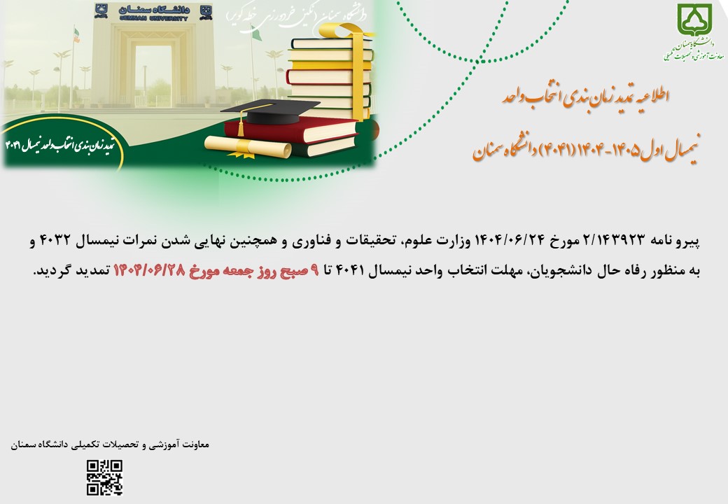 اطلاعیه تمدید زمانبندی انتخاب واحد نیمسال 4041